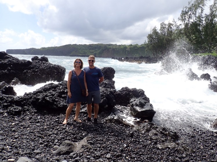 Sedan fortsatte färden genom regnskog fram till Ke’ane där vi tog en promenad och såg vågorna slå in mot lavastranden, mäktigt!