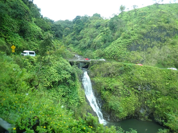 Turen fortsatte sedan i allt mer oländig terräng där närmaste mack ligger timmar bort, bärgningsbilen kan dröja ett halvt dygn och hyrbilsbolagen uppmanar folk att inte åka här. Men, vår trevliga guide körde vidare med glatt humör på vägar som var smalare än vår buss och över broar vars totalvikt vi vida översteg. Allt för att vi skulle få upplever det ”riktiga” Maui vilket vi nu efteråt är väldigt tacksamma för. Här kommer ytterligare bilder av det otroliga landskapet!