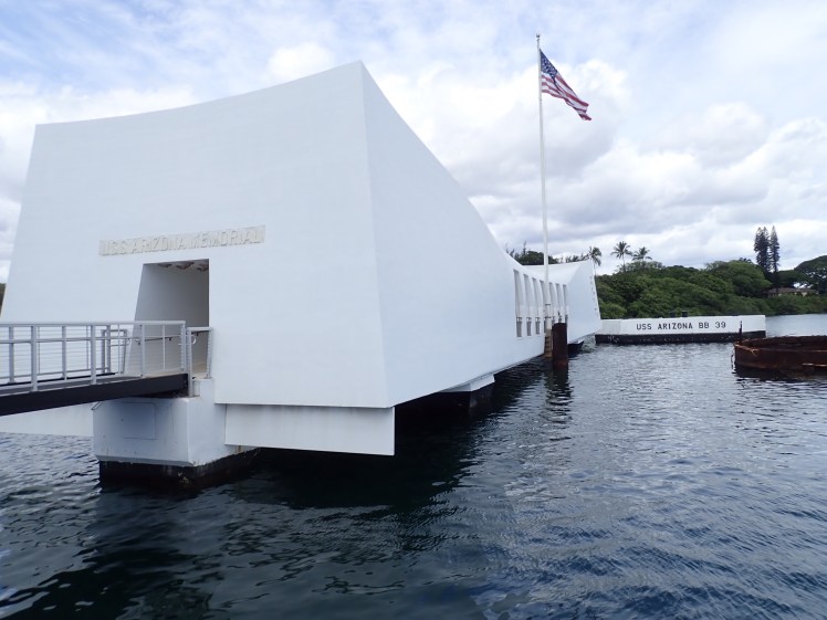 Idag finns en vacker minnesplats för slagskeppet Arizona, det enda av de 8 slagskepp som inte gick att bärja och återta i drift, placerat rakt över vraket där 1177 soldater dog när en bomb träffade ammunitionsförrådet som exploderade. Fartyget fortsatte brinna i 2,5 dagar och endast 48 människor överlevde. Flertalet av de överlevande har sedan valt USS Arizona som sin gravplats.