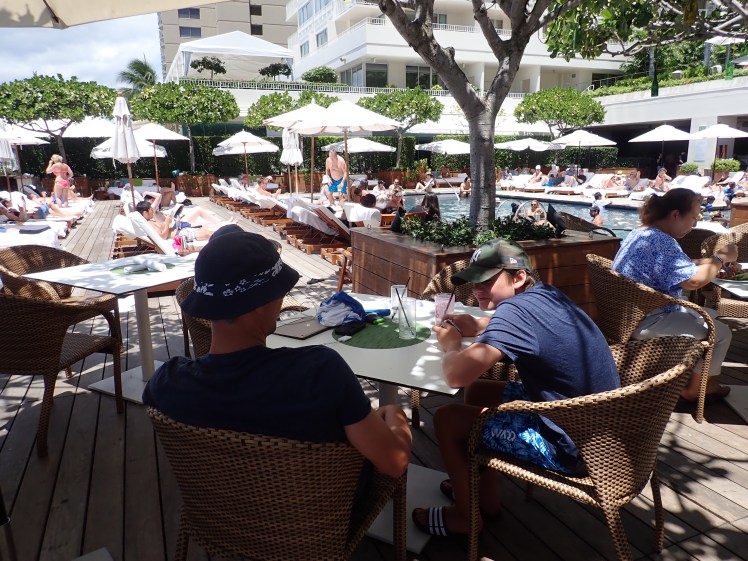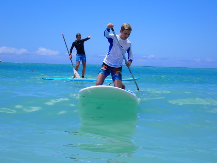 På fredagen röstades en längre sightseeingtur i Honolulu ner av killarna som hellre ville prova paddleboard och bada vid stranden. Waikiki har en bred, lång strandremsa med gott om plats för alla. Sanden är ljus och fin och vattnet är klart men det finns inte så mycket att se för snorklingsugna.