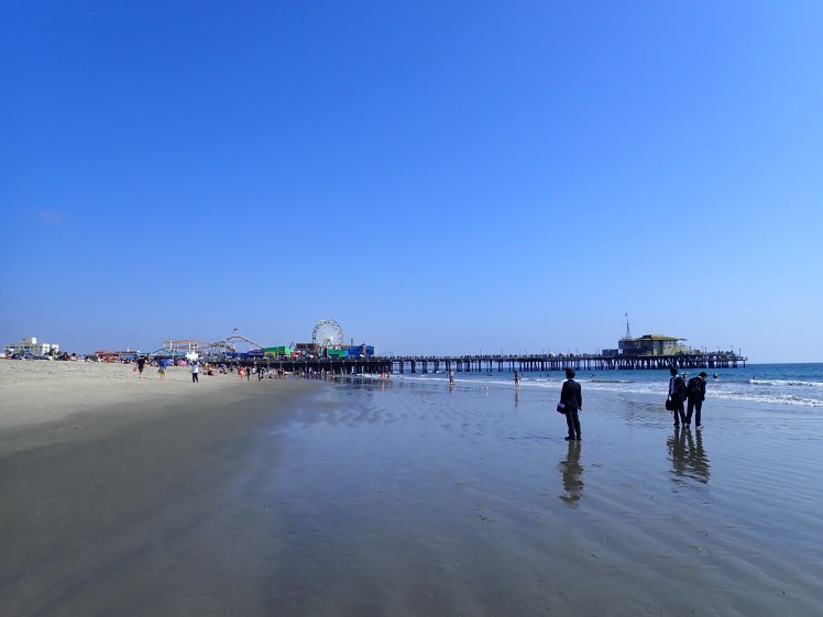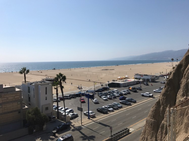 Los Angeles är inte bara väldigt stort, det är också riktigt mycket bilar på vägarna också! Ingen nyhet kanske, men det innebär oftast långa restider för att ta sig omkring i staden och cykel känns inte som ett alternativ i denna trafik. Dagens (18/9) resmål blev stranden. Vi kunde enkelt ta snabbuss några kvarter från vårt hotell direkt ner till Santa Monica Pier och stranden. Den klassiska Route 66 börjar/slutar just här och följer Santa Monica Boulevard den sista biten.