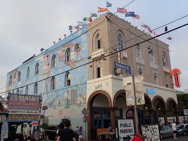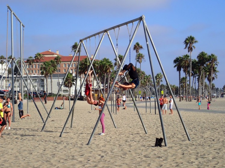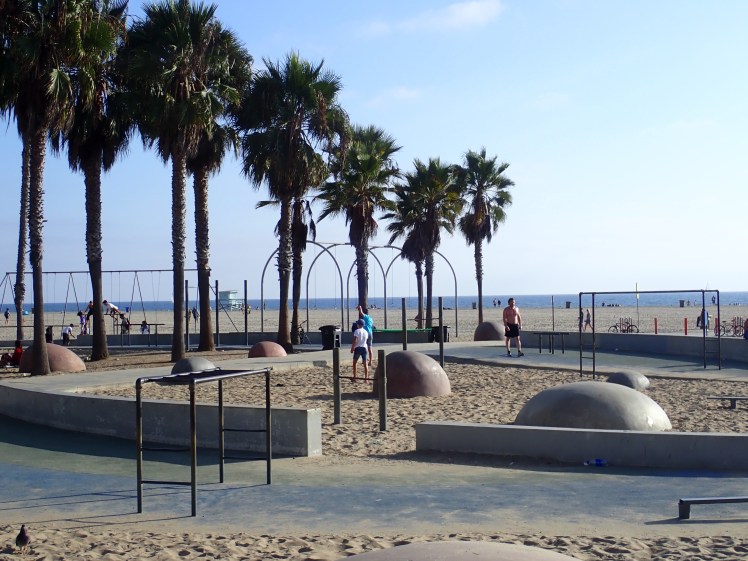 Färden fortsatt sedan söderut mot Venice Beach där de fashionabla delarna med lyxhotell ligger när Santa Monica för att sedan övergå i mer ruffiga kvarter med gatumusikanter, konstnärer, försäljare av alla dess slag och en hel del uteliggare. En ganska sorglig syn där gräsdimman låg tät. Dock är stranden fantastisk med massor med bollplaner och träningsanläggningar! Vi stannade till på Muscle Beach och kikade på skateboarduppvisningen innan vi fulla av intryck begav oss tillbaka till hotellet.