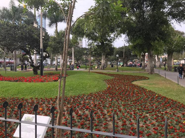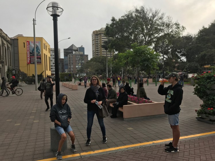 Staden har vuxit från 4 till 11 miljoner invånare på kort tid och är lite svår att överblicka så vi höll oss i stadsdelen Miraflores som vi bodde i. Här fanns promenadvänliga gator och lagom avstånd till havet och strandpromenaden. Bostadshus blandades med hotell och småbutiker längs vägen och vid vattnet fanns Larcomar, ett trevligt köpcentrum med många friluftsbutiker och restauranger.