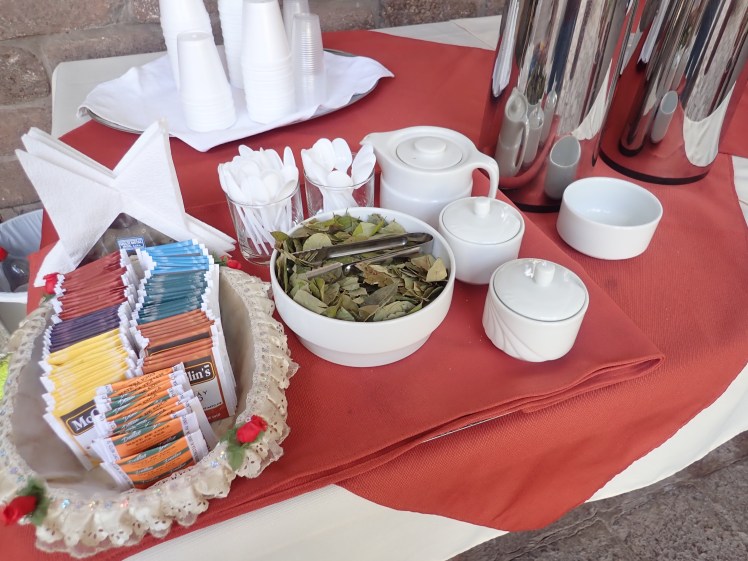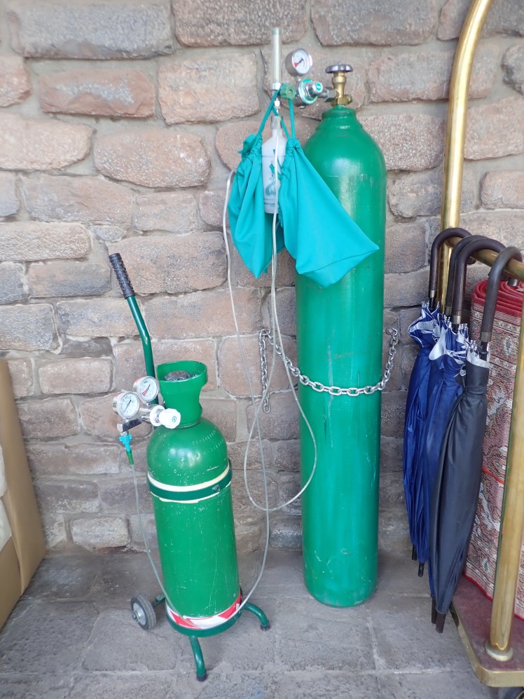 Den gamla stadskärnan är charmig med fina torg och smala gränder men den gjorde oss lite illamående innan vi vant oss vid höjden på 3400m. För vårt välmåendes skull serverade hotellet coca-te som välkomstdryck och hade syregasen beredd.