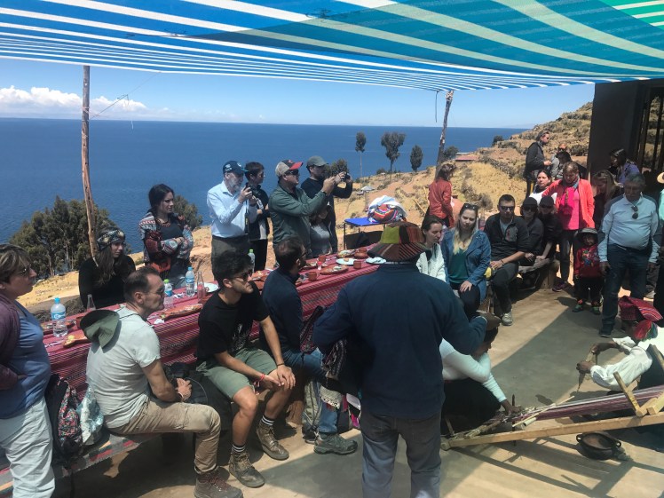 Även här förevisas det lokala livet och vi bjuds också på en förträfflig lunch bestående av quinoasoppa och grillad forell. Öns vävda och stickade produkter anses vara bland de finaste i världen och är skyddade av UNESCO.