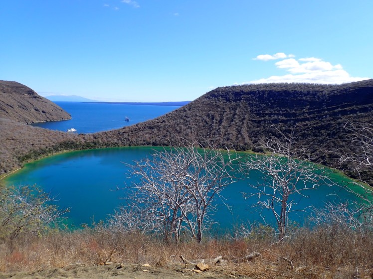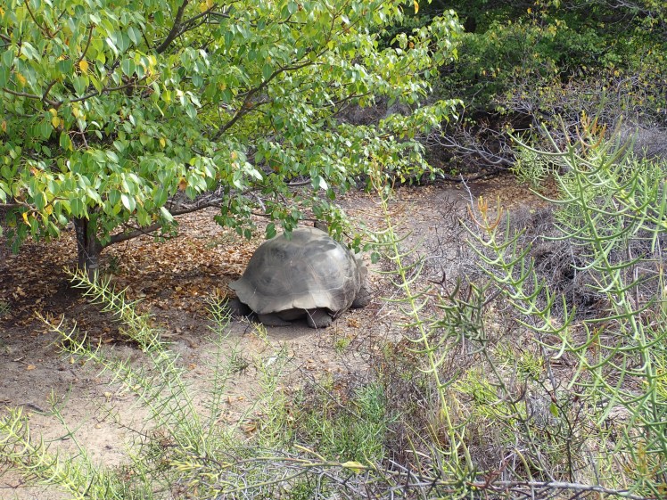 Tidigt på morgonen fortsatte båten sin tur runt Isabela Island och när vi vaknade kunde vi blicka ut över Urbina bay där landmassan genomgick en hastig landhöjning 1954. Vi skyndade på med frukosten för att vara före grupper från andra båtar och kunde se många landleguaner som solade på stigarna. Det skulle också finnas tusentals landsköldpaddor i området men vi såg bara några stycken. En vände rumpan till oss och en kikade fram ur ett bo som den tagit från en leguan.