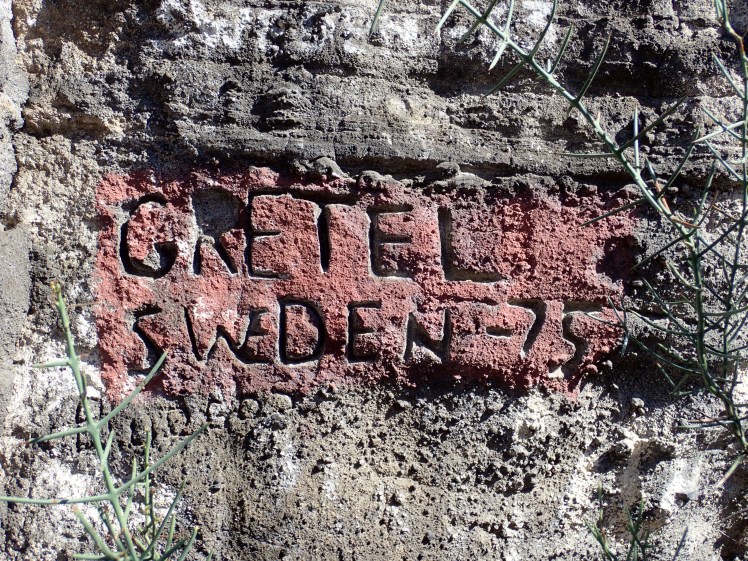 På eftermiddagen steg vi i land vid denna för oss nya del av Isabela och möttes som ofta av ett gäng livliga krabbor. Det fanns ”taggar” från piratskepp och valfartyg på bergsvägarna och vi var inte de första svenskarna som var här.