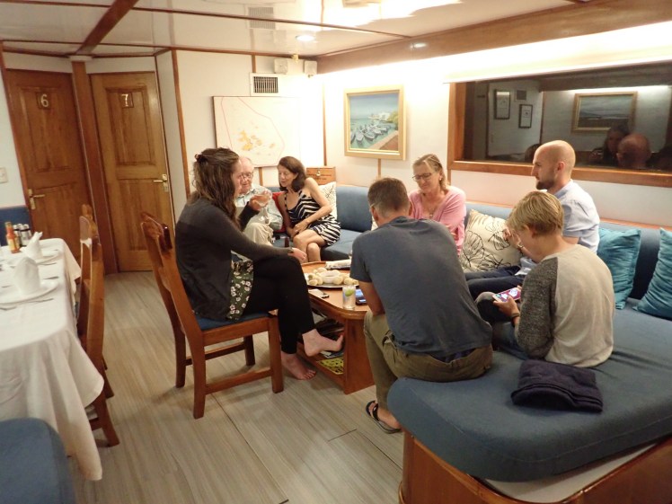 Det var även varmt i solen denna eftermiddag och vi såg fram emot att byta vandring mot snorkling. Martin passade på att ta ett dopp från båten innan alla andra i gruppen var klara och tack vare det råkade vi som tittade på se en hammarhaj som simmade vid badbryggan i aktern.