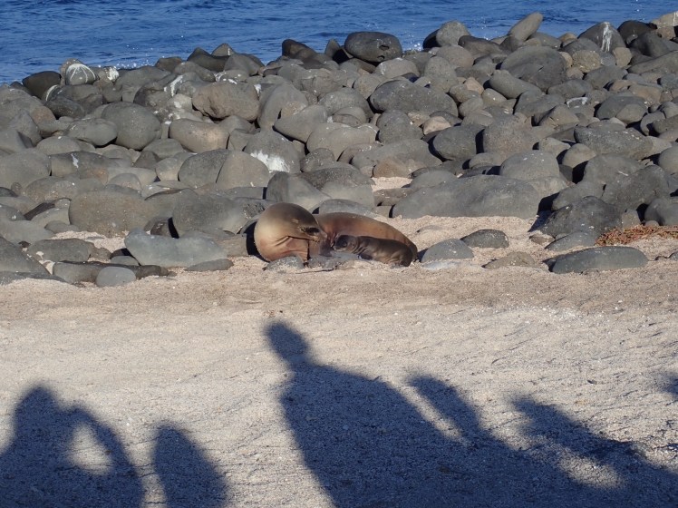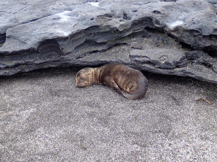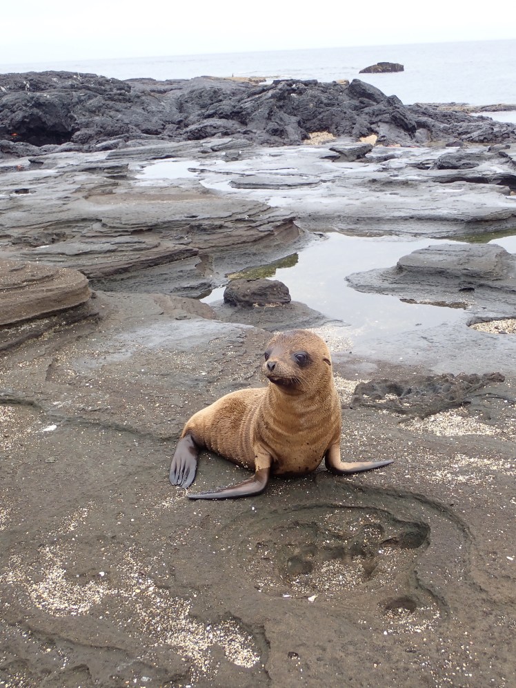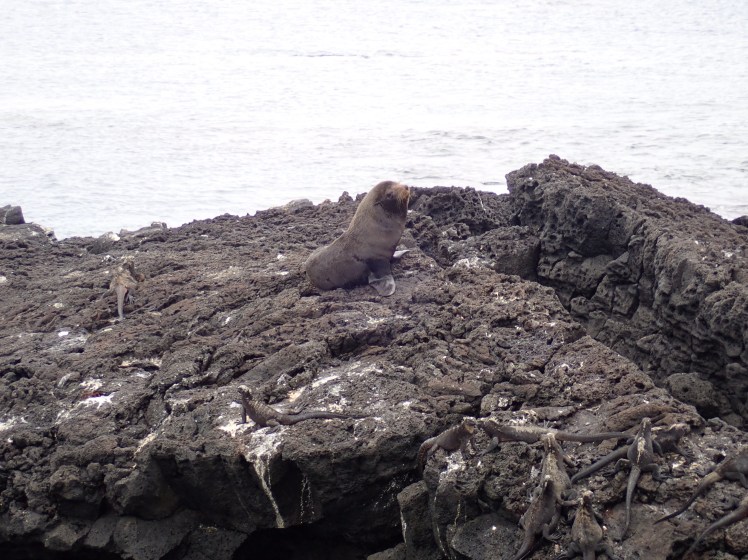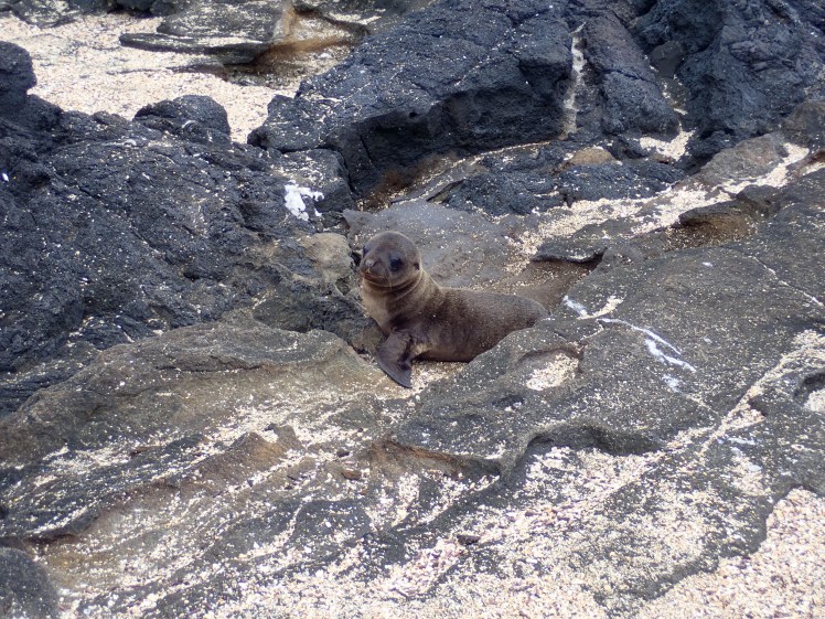 Som tur var fick vi ändå träffa på en handfull pälssälar som försökte armbåga sig upp till toppen på gullighetsskalan men de nyfödda sjölejonen behöll ändå första platsen. Pälssälar är egentligen sjölejon de också men de är mindre, har längre öron och lite annan form på huvudet. Eftersom Galapagos omsluts av både varma och kalla havsströmmar finns djur som valar, pingviner och pälssälar på öarna tillsammans med tropiska arter.