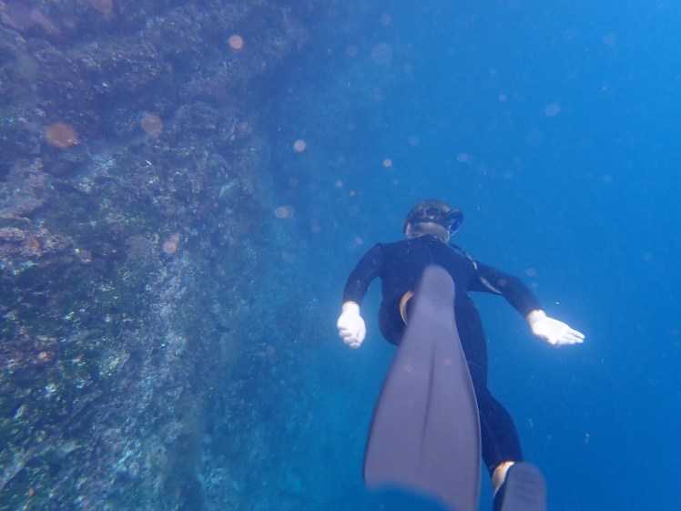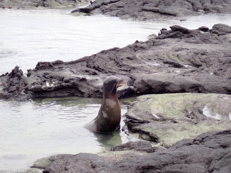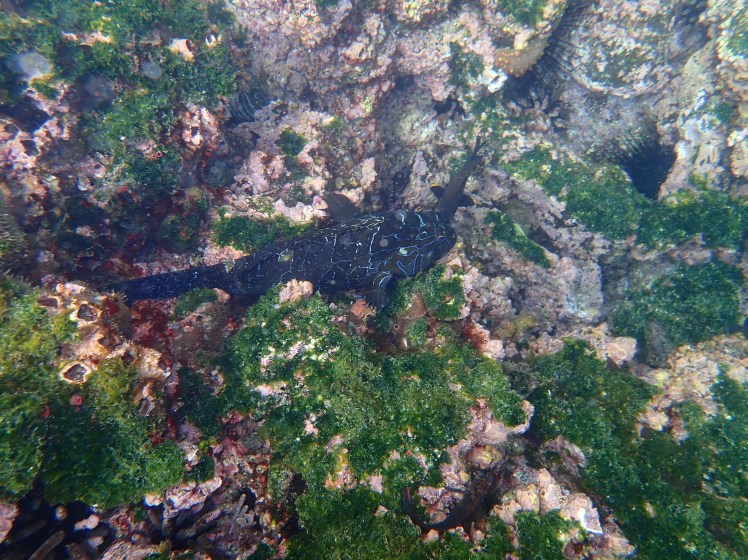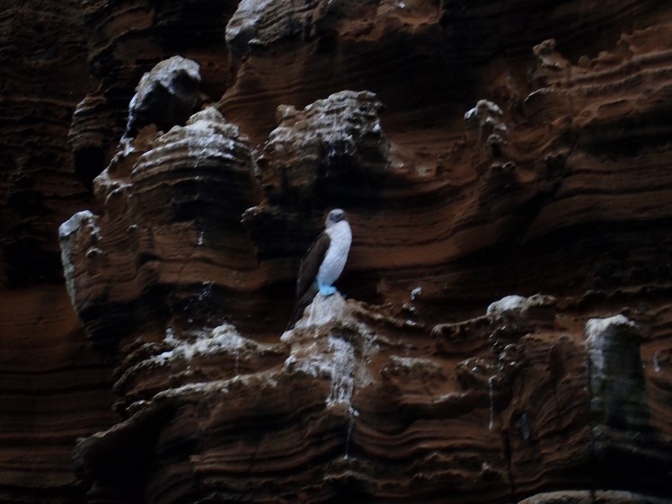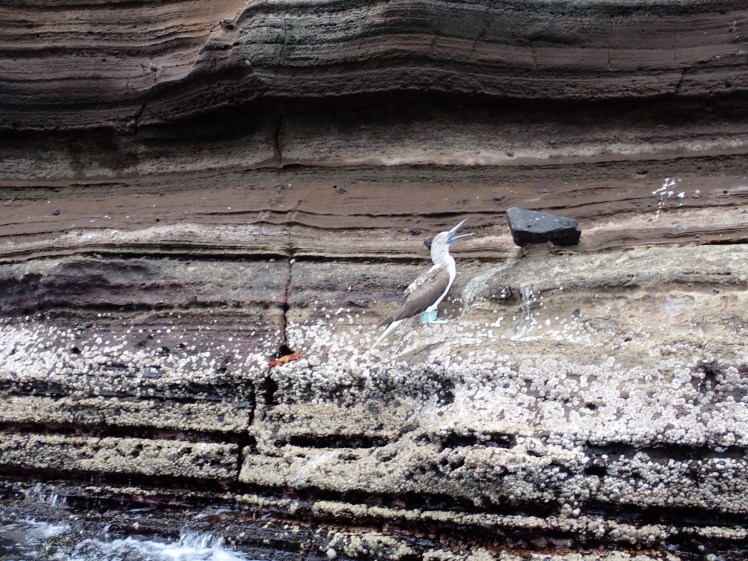 Efter lunch flyttade vi oss tillbaka mot Isabela för en snorklingstur vid Vicente Roca. Vicente Roca är en gammal krater som formats till en bukt med två stycken småvikar väl skyddade från öppet hav. Med en strand som stupar rakt ner i havet ger det denna plats unika möjligheter till djurliv under ytan. En blåfotad sula visade upp sig på vägen.