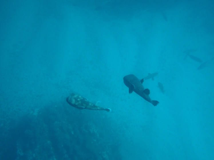 På väg bort till snorklingsplatsen börjar Darwin än en gång vifta. Vi kastade oss ytterligare än en gång i vattnet i alla hast och lyckades få se en Mola Mola, australisk klumfisk. En rund fisk på ca två meter i diameter som sakta simmer ner mot djupet när vi kommer efter, tyvärr inga bilder denna gång.