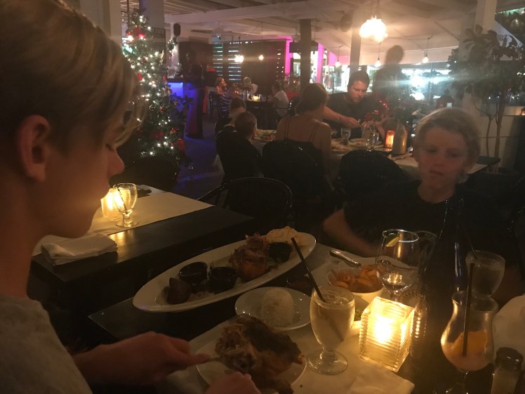 Vi har helst lagat mat och myst i vårt eget krypin på kvällarna men några gånger har vi tagit oss ut på stan. Vi har bowlat igen och sett filmen Wonder (efter underbara boken Undret som killarna läst i skolan) på bio. Vi kontrollerade att restaurangen ”Chicken & Lobster” levde upp till sitt namn en kväll och undersökte varför ”Smokey Joe” verkade vara så populärt en annan. Vi lockades inte till att äta deras friterade Oreos men gnagde glatt i oss grillade revben med olika kryddningar istället. På franska Papillon var inredningen inspirerad av filmen medan menyn bestod av läckra saker som crabbcakes och blomkålsrisotto m m.