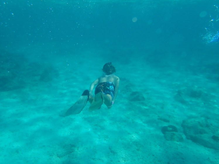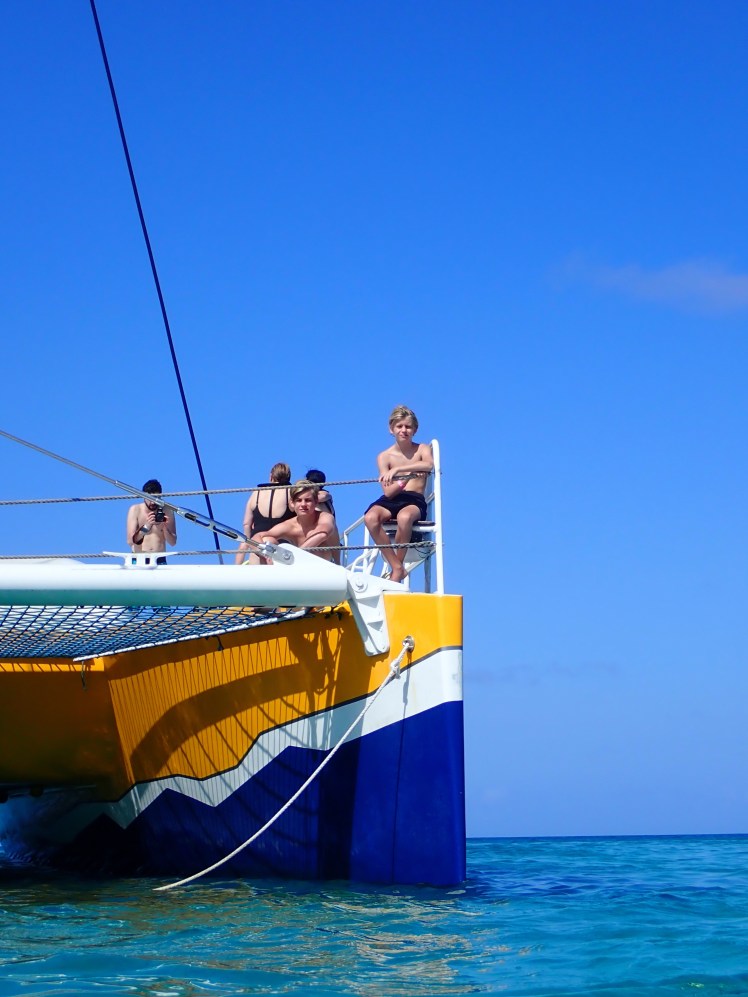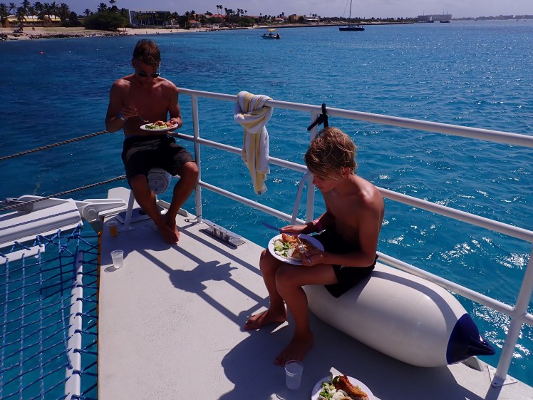Efter en vecka tyckte vi att vi borde se lite mer av den 180km2 stora ön. Killarna valde vårt ”minst dåliga” förslag och vi satte av för en katamarantur längs kusten. Förutom att beskåda fyren och landmärket California Lighthouse som uppkallades efter ett ångfartyg som förliste utanför kusten 1891, såg vi kanske inte så mycket av själva ön men desto mer under vattnet. Först stannade vi för snorkling vid karibiens största spökskepp Antilla som sattes på grund här 1940 eftersom dess tyska kapten inte ville att fartyget skulle komma i fiendernas händer. På något sätt är det alltid lite kusligt att simma omkring vid ett vrak och de ganska höga vågorna förstärkte spänningen ytterligare.