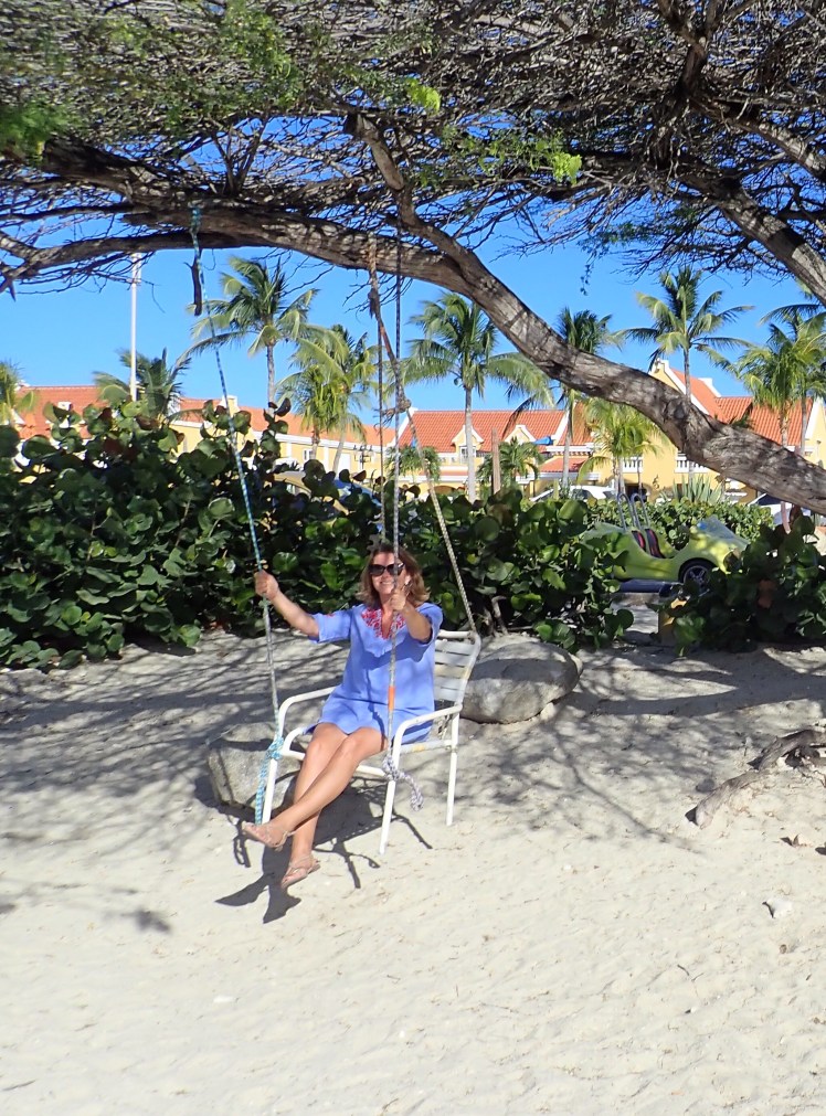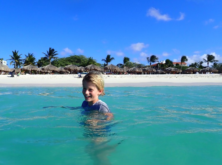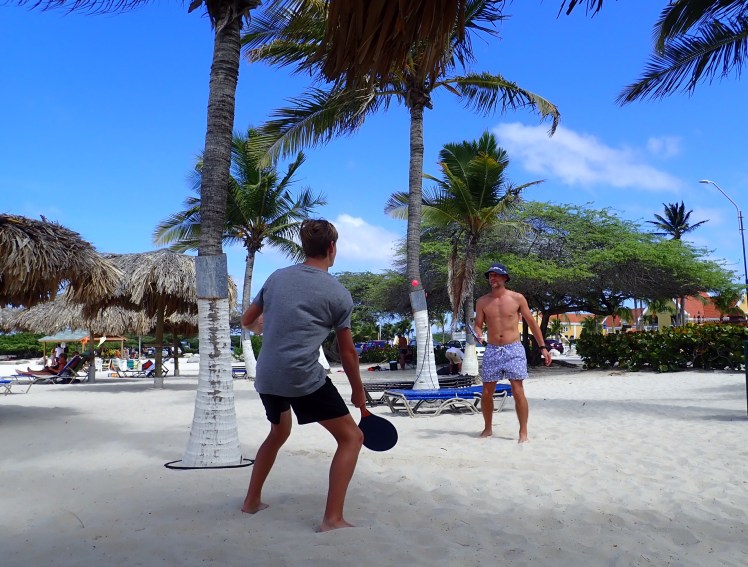 Aruba har bjudit på tryckande hetta och brännande solstrålar som nästan gått att ta på, men vi har hört era berättelser om ihållande regn och kyla i Sverige och därför lutat oss tillbaka och försökt njuta i skydd av både basttak, palmkronor och sf 50. Och precis som vid matbordet hemma fanns det outtalade men fasta platser bland solsängarna på stranden här. Vi hade tur och hamnade bakom ett riktigt charmtroll som avverkade sin åttonde Arubasemester på lika många år. Vi roade oss dagarna i ända med att ligga och spana på honom och han var lika outtröttlig i att spana på oss.